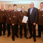 Bürgermeister Richard Schober und UA Kdt Werner Schrom gratulierten dem neuen Kommando und bedankten sich bei den bisherigen Kommandomitgliedern OBI Johann Stipsitz und V Johann Pratsch. Für ihre Leistungen erhielten Johann Stipsitz den Ehrendienstgrad EOBI und Johann Pratsch den Ehrendienstgrad EV.